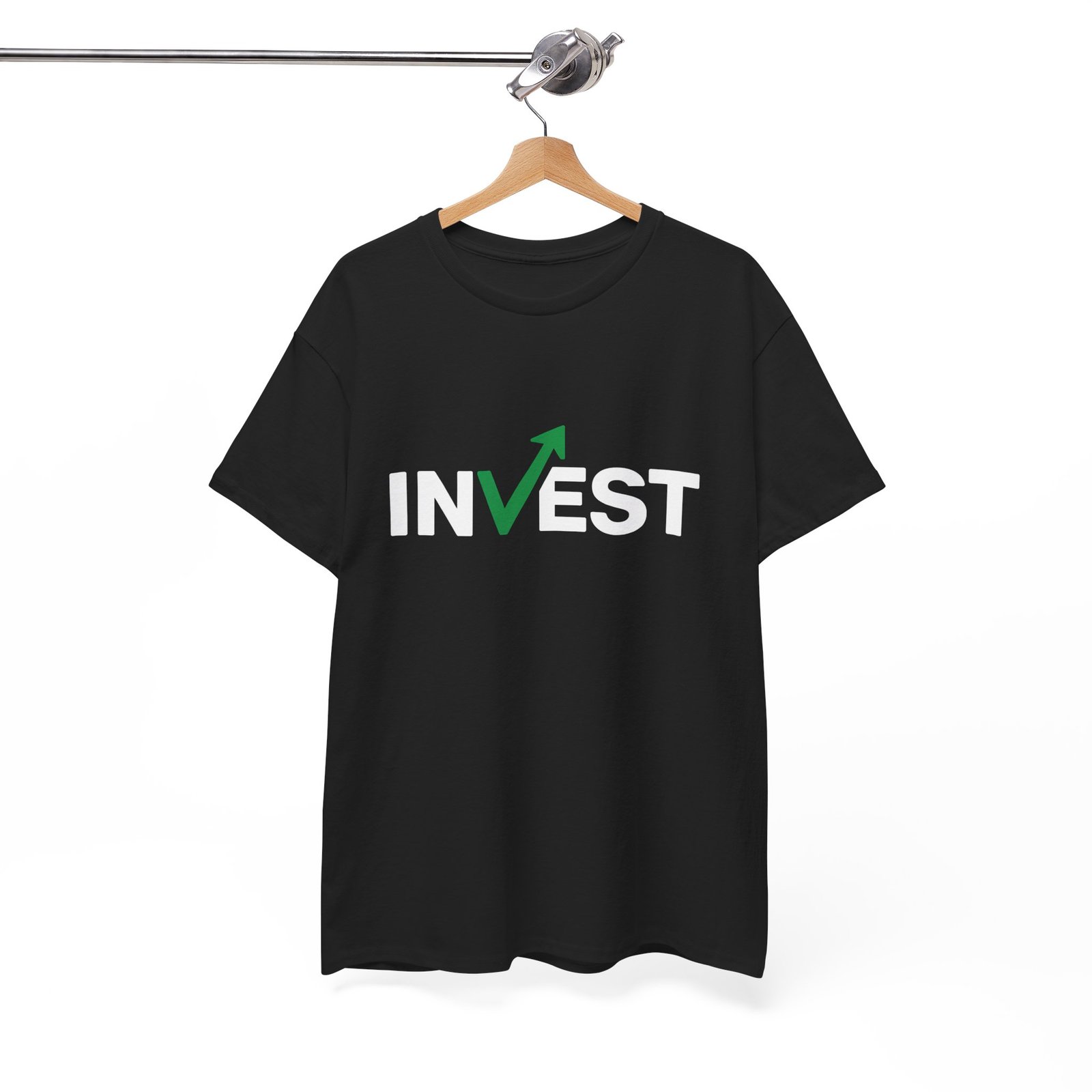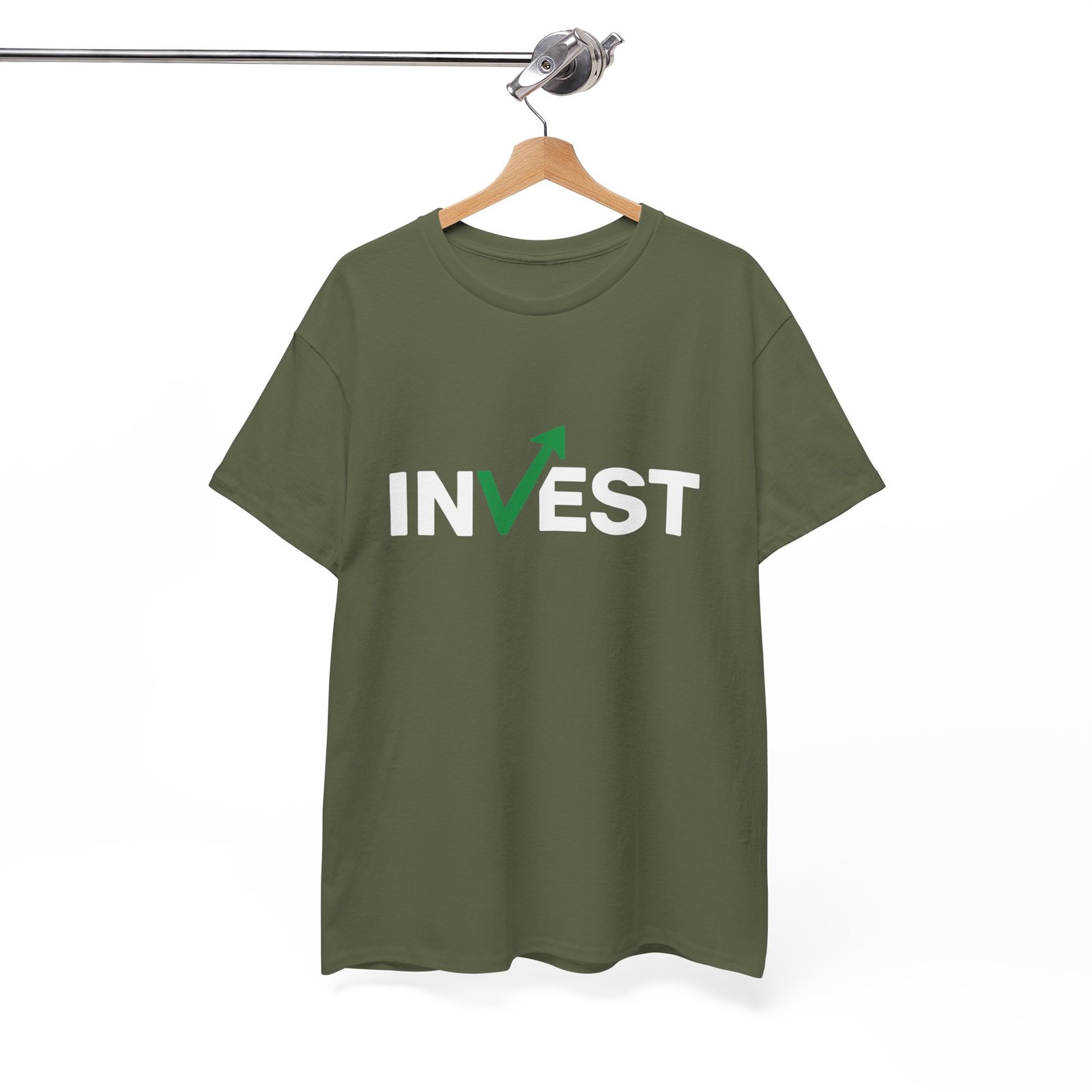 invest t-shirt, financial growth shirt, motivational t-shirt, green arrow design, financial success apparel, unisex cotton tee, trader clothing, sustainable fashion, eco-friendly t-shirt, Oeko-Tex certified, US Cotton Trust Protocol, finance-inspired t-shirt, stock market apparel, entrepreneur t-shirt, money management shirt, investment motivation shirt, casual financial tee.