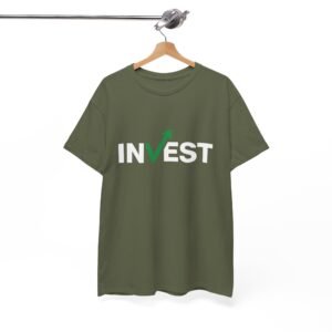 📈 Minimalist Design: Features the word “INVEST” with a sleek green check mark forming an upward arrow, symbolizing financial growth and success.