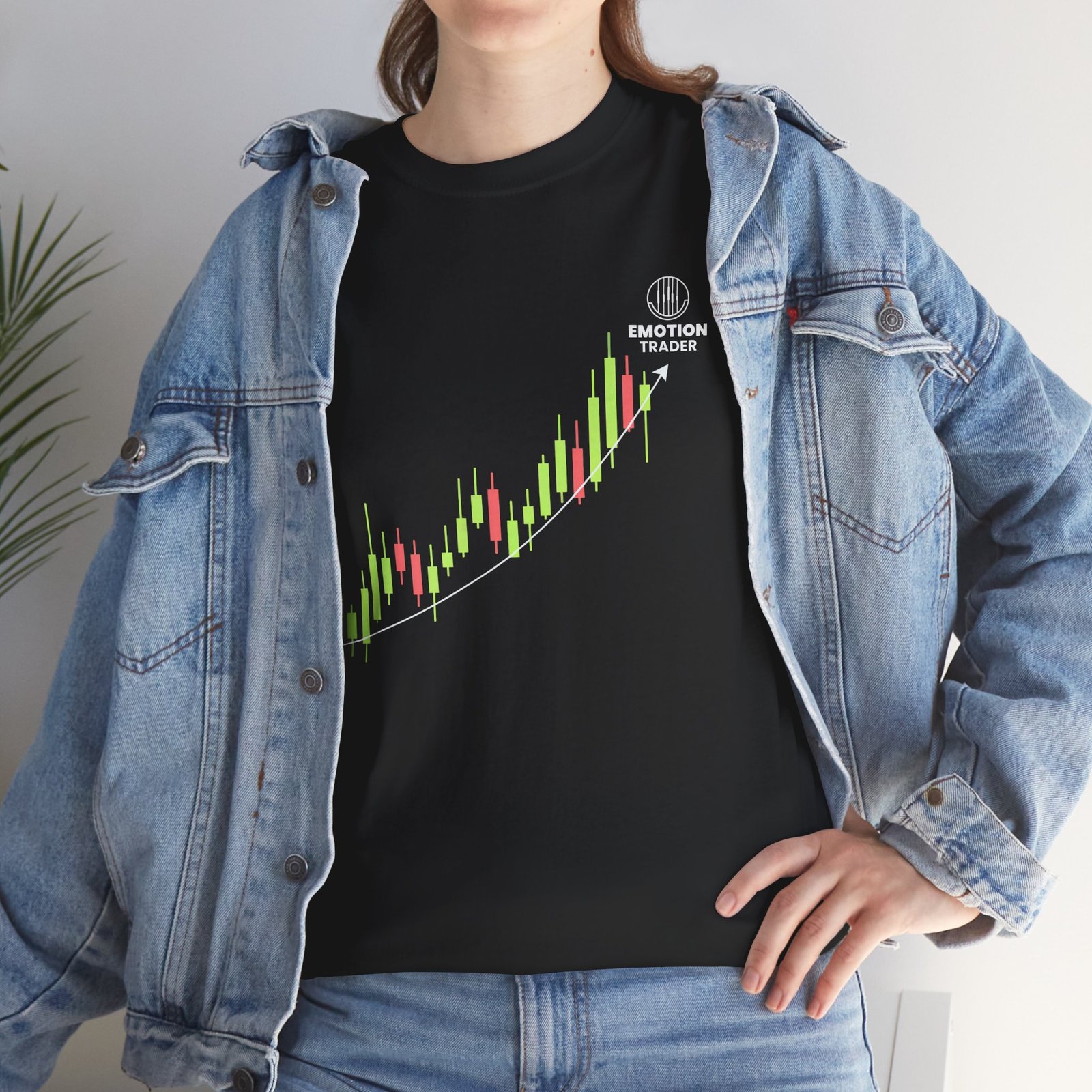 trading chart t-shirt, bullish trend shirt, trader clothing, stock market apparel, forex trading t-shirt, cryptocurrency trader shirt, market enthusiast tee, black trading graphic shirt, trader lifestyle apparel, trading candlestick t-shirt