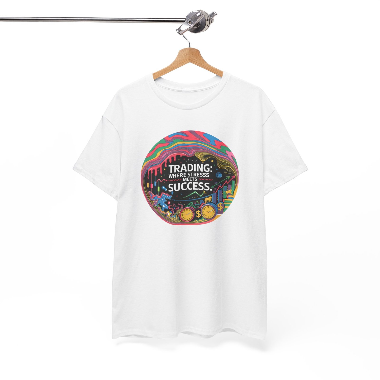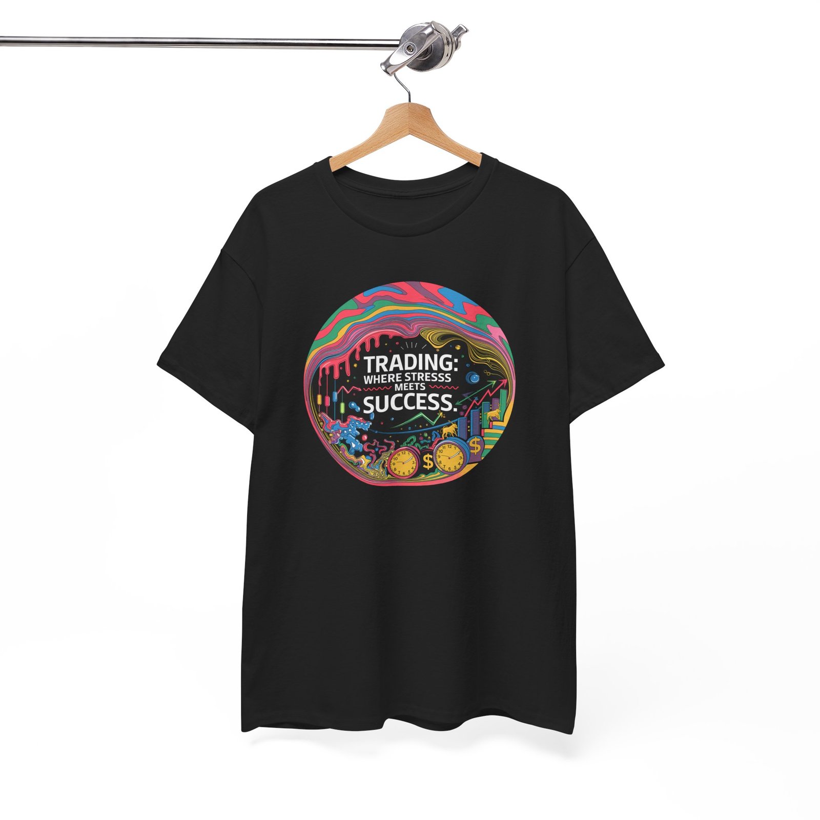 Trader T-Shirt, Trading T-Shirt, Stress and Success Shirt, Financial Markets Apparel, Vibrant Stock Market Design, Day Trader Clothing, Bull and Bear Graphics, Wall Street Style, Trading Gift, Financial Achievement Shirt.