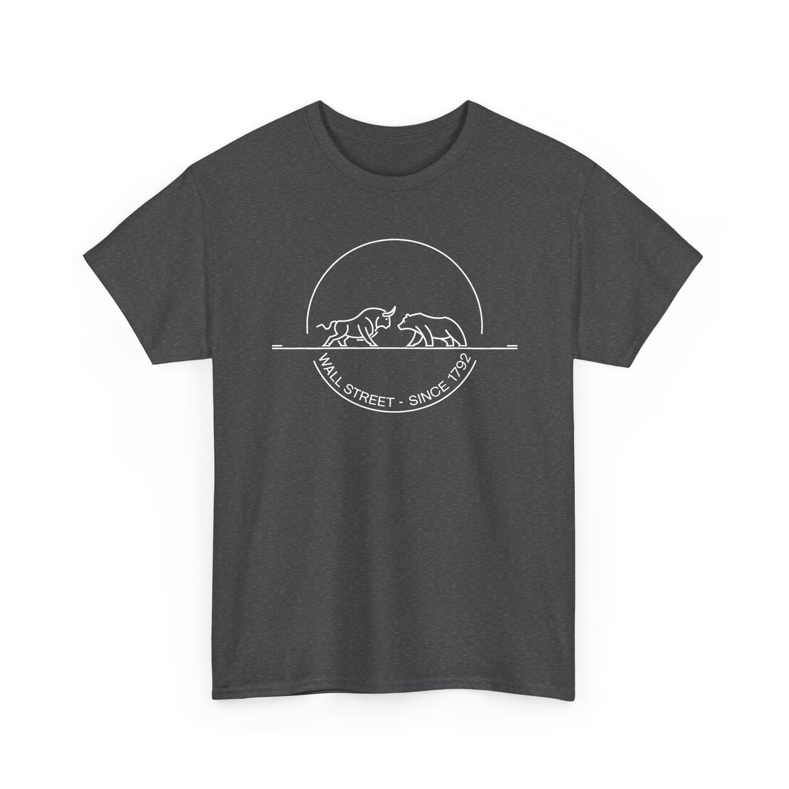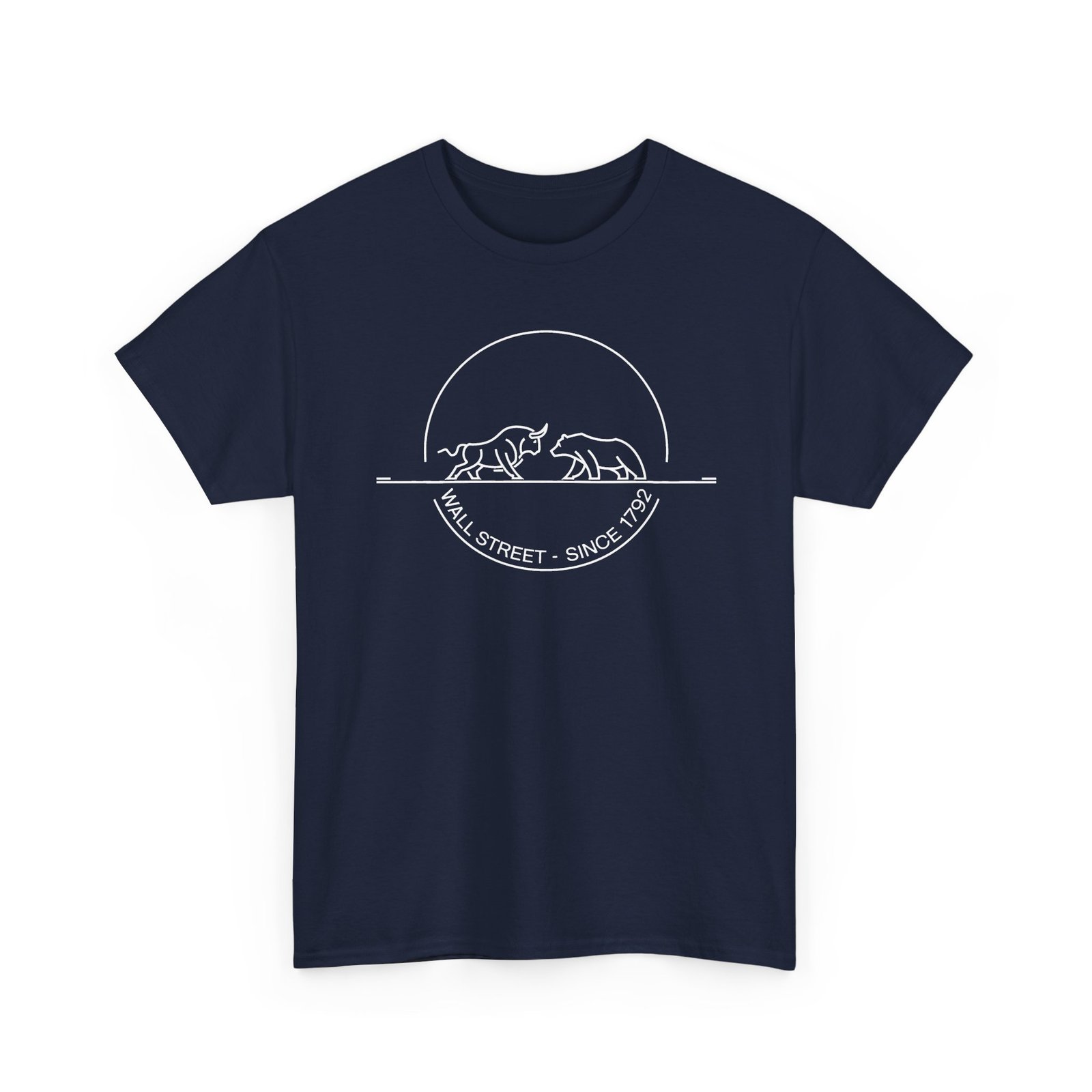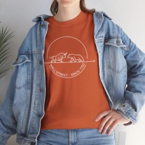 The “Wall Street Bull & Bear – Since 1792” minimalist Trader T-Shirt is crafted for those who live and breathe the markets. This sleek, circular design encapsulates the timeless clash between the bull and the bear, iconic symbols of Wall Street and the power struggle in market dynamics. With clean lines and a modern aesthetic, this Trading T-Shirt is ideal for traders who want to wear their passion with sophistication and style. Perfect for both casual and professional settings, this piece of Trader Clothing represents the balance of strength and strategy, allowing you to express your love for trading with a refined, understated look.