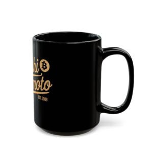 Satoshi Nakamoto mug, Bitcoin coffee mug, black ceramic mug, crypto trading cup, BTC drinkware, cryptocurrency gift, Bitcoin tea mug, crypto accessories, blockchain coffee cup, 11oz mug, 15oz mug, lead-free ceramic mug, BPA-free mug, Bitcoin design cup, crypto-inspired drinkware.